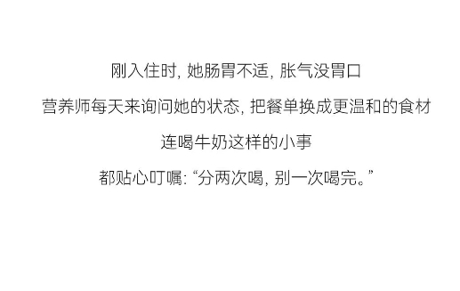 刚入住时,她肠胃不适,胀气没胃口